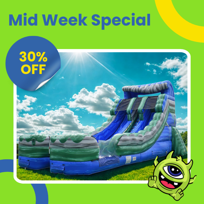 Take advantage of our exclusive weekday discount and save up to 30% on your inflatable hire!